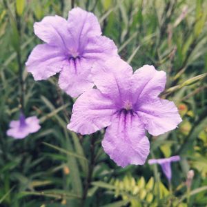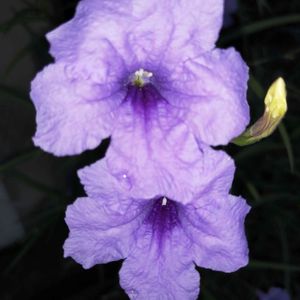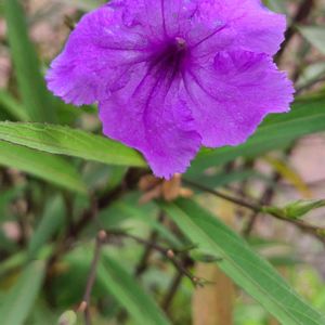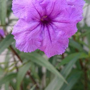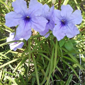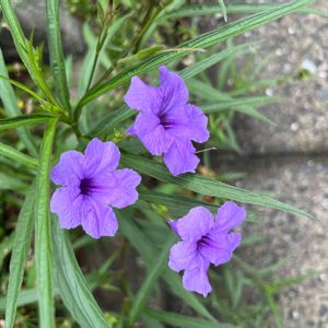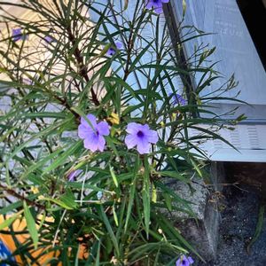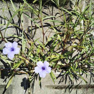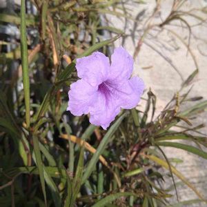 お隣りさんの門柱のコンクリートの隙間から毎年咲いています。 60㌢に成長しました。ウチにもこぼれ種が飛んできてます。 別名:コモン・ルエリア ルエリア・スクラローサ 春から晩秋まで長く咲く。 🏷愛しの紫