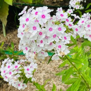 曇り空の下 可愛い花姿 白い花弁にピンクのアクセント 花魁草(フロックス)