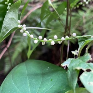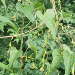 蔓に順序よく並んだ雄花が かわいいです💕 ヤマイモ?ヤマノイモ?長芋でないことは確か…