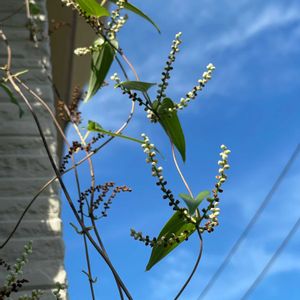 ヤマノイモ🌿 (雄花) ヤマノイモ科 ヤマノイモ属 雌雄異株 初めての出会いです♡♪ フェンスの向こう側に ツルが足下を這ってました🌿