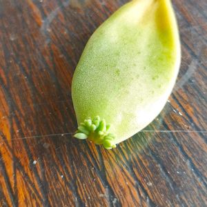 おひさしブリーフ!✨ ここ数日の高温多湿で、元気だった普及苗までも、群れて☆に…。😰 そんな中、巨大に育ったシテリナ?の葉挿しから、発芽。 綴化ちゃんかな?