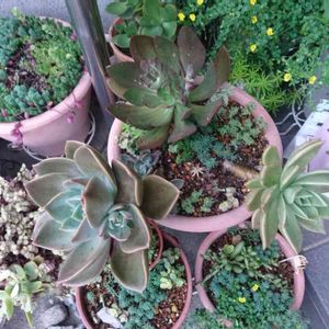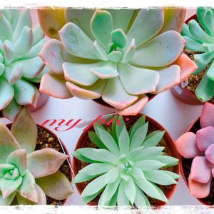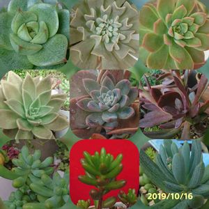 多肉永遠さんで注文してたのが 届きました💕なんか画質悪い😂 左下のエケベリアは七福の薔薇とコロラータの交配で 苺ケーキっていう名前\( ˆoˆ )/ 夏越し出来ますように🙏🏻