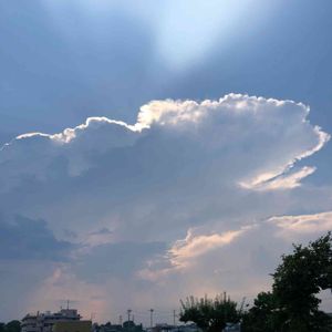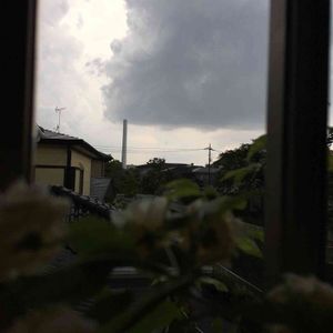 この前の夕焼けの空に、今日は雷雲。 何かを放出しているのか、吸い込んでいるのか、、、 のように見えます。 微かにゴロゴロ⚡️と聞こえた程度で終わりました。 枝豆を抜くおばあちゃん登場🧓🏼 2019.8.1撮影
