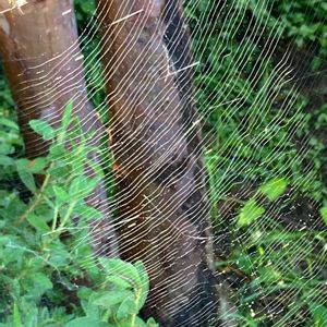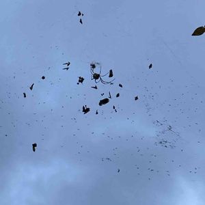 緑道をまたいで上空にクモの巣がありました🕸 いろんなものが空に巻き上げられているみたいです🌪