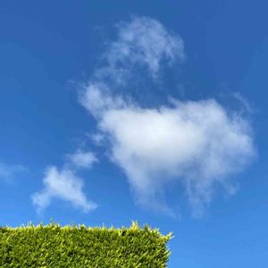 こんばんは♬ 今日の昼の空💙✨ わんこ🐕かオオカミ🐺がお口を開けてるような感じ♬に見えたので🤳😉👍 ムラサキツユクサ💜✨ 曇り☁️だと、割と元気そうです💕 蕾んでいる子もあちこちに♬