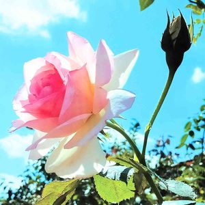 ウチのピエールさん🥀 いつの間にやら グングン 上へ上へと伸びていき すっかり お空さんと 仲良しになったみたいです💓 ( ◜‿◝ )♡ 🏷土曜はお空の発表会 🏷雲仲間 🏷ピンクワールドへようこそ 参加させて頂きますね🥀