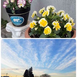 ⬆️パンジーやビオラの花数が増えてきて、華やいできました。😄🎶 ⬇️今朝の散歩より。 7時ちょっと過ぎの空が素敵でした。😃✨ 頑張ろう❗日本‼️ 👊✨