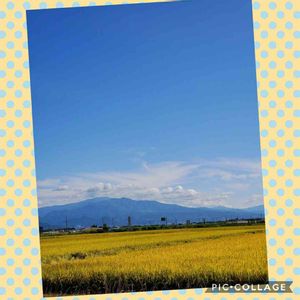 『蔵王山と田んぼ』 今日は天気が良くて稲刈り日和🍚 田んぼが黄金色✨✨