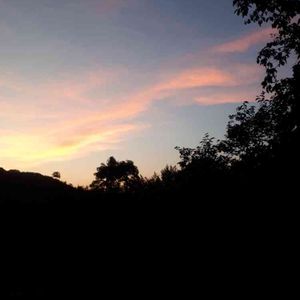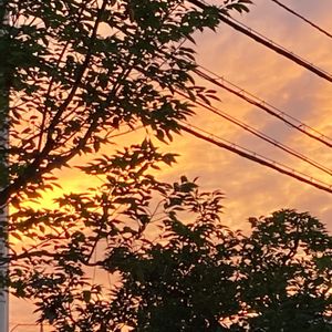 河原の木と夕焼け。水遊びの後に川に石投げて水切りした。1回しか跳ねない…。子供でも2回跳ねるのに( ㅍ_ㅍ )なぜ…