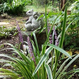 おはようございます✨ 昨日は午後からしっかり雨が降ってくれましたので、今朝の庭はしっとりして、かなり涼しくなりました✨😊 今は曇り🌥️ 今日のヤブランとリスさんです💕🐿️