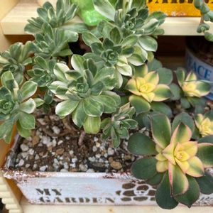 錦の日、参加します😊 クリーニング屋さんでチョンパしていただいた子。 愛染錦と夕映かな? アオエニウムの仲間なんですね^ ^