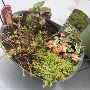 セダムたち。 寄せ植えしたけど なんかとっちらかってる(^_^;) アオエニウム?混ぜて大丈夫だったかなぁ…