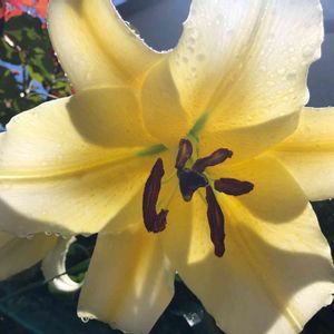 おはようございます😃 ユリがやっと咲きました😆💕 去年、花友さんより球根いっぱい頂き、初めて植えました🌸顔くらい大きなユリです❤️ ユリが咲きそろうの楽しみです🥰