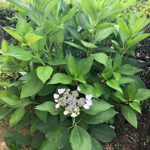 おはようございます😃 ウチにあるもう一つの紫陽花です❣️この子は、高さがあまりなかったので、剪定せずに済みました😅 なんでも、葉の色も紅葉するので秋まで楽しめると言われた紫陽花…ただ名前忘れました😅