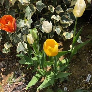 チューリップ開花中🌷 原種が早く咲く気がするけど、たまたまかな⁉️ 今日からGWになりました😃 お家で過ごせるように、お庭用に買い物いってきます😁