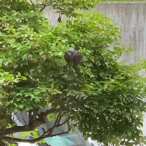 リビングから見える、ドウダンツツジの枝に鳥さん🦆がよく遊びにきます❣️ 中央に見えるんだけど…わかります⁉️ ヒヨドリかしら⁉️ 気付かれないように、ズームでパシャリ😃 ズームしたので画像が粗くなっちゃった😅 ドウダンツツジの花を食べているようです。うんめが〜💕
