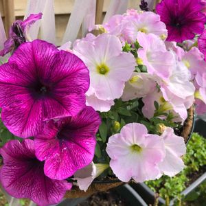 壁掛けのペチュニア咲いてます😊 今日は天気が良いので、裏庭の小道作ろうと思います💕