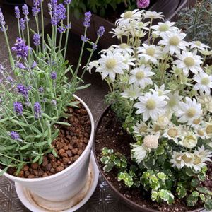 フランネルフラワー大好きで、1株買い足し💕ラベンダーと一緒に植えようと思ってラベンダーも買ったけど、別々にしちゃった😅
