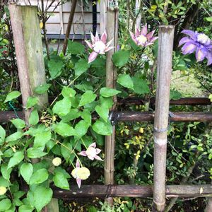 ウチの最初のクレマチス咲いてきました😃 名前わすれちゃた😅 去年、植える位置移動したので、今年成型したいと思います❤️ 元気に咲いてね😘