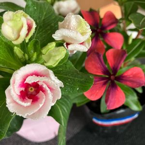 ニチニチソウが仲間入り! かわいいカップ咲きのオリジナルビンカ みき♡ 名無しのニチニチソウ 色がキレイ😍 後で寄せ植えにしよう。:+((*′艸`))+:。