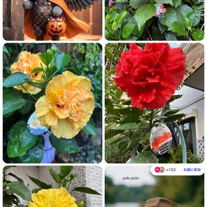 おはようございます😊 真夏の間はちっとも雨が降らなかったのに、 このところ毎日しとしと…☔ 1️⃣ ハイビスカス ニューロングライフ・アドニス 2️⃣ 八重咲き秋明菊 八重を植えた覚えがないけど、ご近所さんから飛んで来てくれたのかも🩷 思いがけず咲いてくれて、かわいいです☺️ 3️⃣ サルビア アズレア 背丈は1mほどになるそうですが、たらりと寝かせて咲かせています🩵 支柱なしでナチュラルに🤭 4️⃣ 自作のデコパージュ part.2 CAINZさんで見つけたフェイクの煉瓦にデコしました🎨 いつかピックに加工できたらいいなぁ〜と思っています🌿