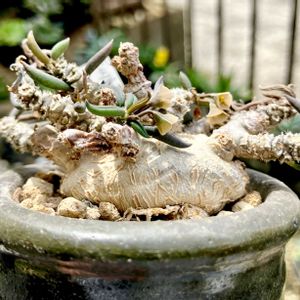 Tylecodon reticulatus 万物想 南アフリカ乾燥高原地帯のナマクアランドの出身らしい 葉の枯れ始める頃に開花が始まる 今年は5本の花芽 枯れ枝をもっともっと増やしたい😊