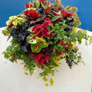 昨日に引き続きとちぎ花センターの展示の写真を✨ ハンギングバスケット協会栃木支部として春と秋に展示をさせて頂いていますが、デザインは毎回持ち回りで考えています。 なのでそれぞれ個性が出て雰囲気も全く違うのです😊 ハンギングはだいたいの花材や雰囲気をデザイン担当者が伝えてあとはお手伝いのマスターさんにお任せなのですがそこは本当にいつも感動ものの連携で素晴らしい出来栄え💕 こちらはメインの大きなハンギング🌱 渋カッコイイです👍