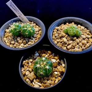 Gymnocalycium denudatum'KAIOMARU' 海王丸実生 半割れになって👶が出てきた子と 縁刺し(へりさし)の綺麗な子