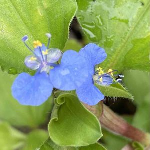 ~マルバツユクサ~ 丸葉露草 🏷️(祝)青い花マニア40000pic 🏷️青い花マニアさせてくださいね。 露草に似ているが葉が 露草より丸み帯びて大きく 花は露草より小さいです♬♡ 実家の近所