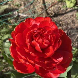 おはようございます 3年めの球根 心配してたラナンキュラスがやっと咲いてくれました☺️ 真っ赤で小さな庭でひときわ目立っています。