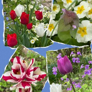 🏷️真っ赤な火曜日 ①②八重咲きチューリップ ③白いスイセンと一緒に ④原種チューリップ