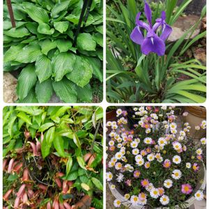こんにちは✨😃❗ 朝から雨ですがだんだん 大降りになりそうなので 🤗❣️ 大好きなカキツバタが開花しました。 種から二年目のエリゲロン(源平小菊) ギボウシのグリーンも 綺麗 毎年 咲いてるツリガネカズラ カレー🍛の香りがします。😄