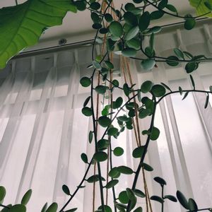 ある日の夕方。 丸い窓の模様と丸い葉っぱの共演に、しばらく見とれてしまいました。 アロマティカス、今年もたくさん新芽が出てきてかわいいです🥰