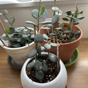 グリーンドラム🟢さん植え替え ハンキングにしようか迷った結果、まだ吊り下げなくても行けそう仕立てにしました。すぐ乾くのでぷくぷく維持には水やり多めで