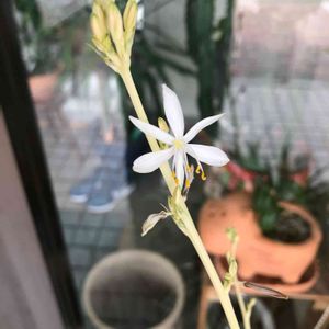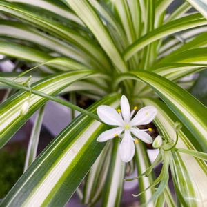オリヅルランの可愛い白いお花が咲いたよ☺️ひとーつだけ😉