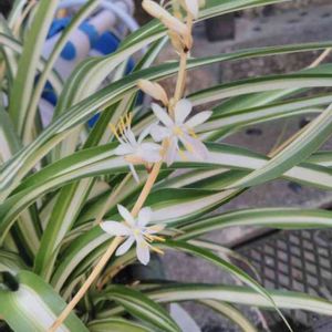 オリヅルラン! 花が咲くなんて知らなかった。。。 めっちゃ可愛らしいお花✨ あと2つほどつぼみがある🎶