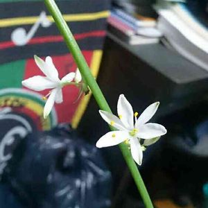 オリヅルランのお花っていつ見ても癒される。 可愛いわ💕