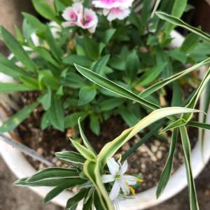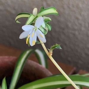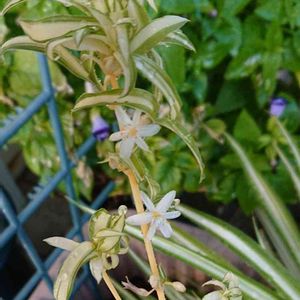 オリヅルランの花が咲いてました。 初めて見た!花咲くんだ! …と思ったけど、そりゃ植物だから花咲くよね🤣