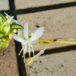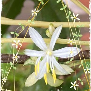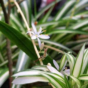 🤍オリヅルランの花 キジカクシ科 オリヅルラン属 葉の端に小さな子株を作ることによって繁殖します 花言葉は「絶望の中の希望」だそうです