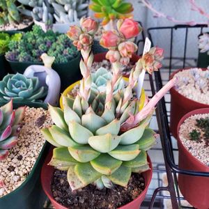 ツルギダ (エケベリア属) ロゼットが美しかったので、お迎えしたエケちゃん😊 ヤマトヒメさんによく似てるな~👀 ニョキニョキと花芽が伸びて、お決まりのおちょぼ口のお花が咲きました~🤣 葉っぱが、意外に弱っていないので、カット✂️しないで、このまま暫く楽しもうかな~(๑˃̵ᴗ˂̵) 今日も、頑張りましょう°ʚ(*´˘`*)ɞ°