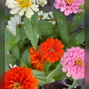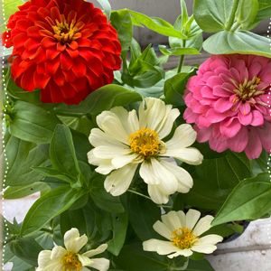 今日のお花✨ 百日草(ジニア)です🎵 色とりどりのお花が咲きました。