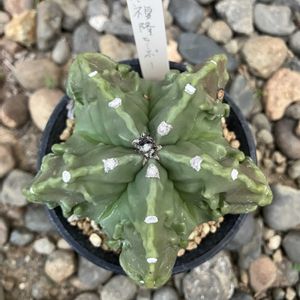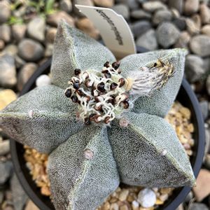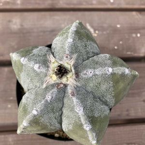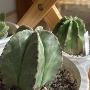 おはようございます🌄 サボテン科 アストロフイツム属 複隆碧瑠璃四角鸞鳳玉 鸞鳳玉の変種です🌵 複隆(ふくりゅう)稜と稜の間のこぶを指しますが少し少なめ😥 碧瑠璃(へきらん)基本種は白い斑点に被われますが退化して緑一色🌵 四角(しかく)基本種は稜が5本🌵 😅四角鸞鳳玉だったが増稜して基本種になろうとしている(残念かな❓😥)
