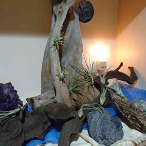 お正月の飾りを取ったら何をおこうか……… 夫が、流木を置きたい。 「じゃあどうぞ」 でも、いつまで待っても動きそうもありません。 どんなイメージなんだろう???? 取り敢えずエアープランツと一緒に。 アンモナイトと似ている化石や宝貝?の仲間の化石も一緒に‼️ おいおい ちょっとまだ寒そうですよ。夏仕様ですよ‼️