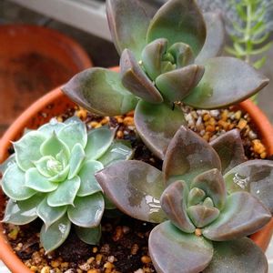 我が家で1番大きなエケベリア、白鳳hybです。手のひら位あると思う。5年前からここにずっと雨の日も風の日も暑くても寒くても西陽ガンガンの雨ざらしで鎮座しています。寄せ植えの中の1つだったのですが残っているのはカルフォルニアサンセットのみ。毎年植え替えようか悩んで植え替えていません。 今年はどうしようかな〜🤔
