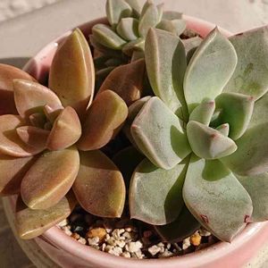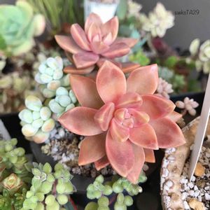 チョッキンした『カルフォルニアサンセット』と株分けした『ピンクプリティ』❤️ 良い色づきでしたが、だんだん緑になってしまいますね😊