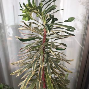 ユーフォルビア 『シルバースワン』 高さは出たものの下の方は葉なし この姿 今後期待できるのかしら❓