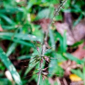 ケチヂミザサ(毛縮笹) イネ科チヂミザサ属 紫褐色の花序にピンク色の雌蕊 こんなケチヂミザサの姿に今まで気付いていませんでした ひっつき虫になる前は 可愛いお花を咲かせていました 広義のチヂミザサは2変種に分けれ 毛が多い物をケチヂミザサ 毛が少ない物をコチヂミザサ(チヂミザサ)とに分ける