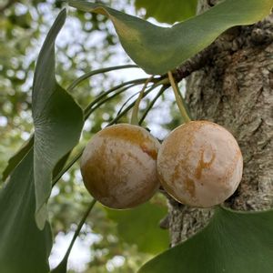 ぎんなんたわわ 街路樹の銀杏の実がぼとぼと毎日落ちています 近隣の方かな、お掃除部隊が連日出動 滑るし匂うし苦情が来るらしい それちょっと寂しいね #銀杏の季節 #秋の味覚 #翡翠色 おっと💦上ばかり見て写真を撮ってたら踏んづけてしまったよ あちゃ😅クルマのマットにビニールでも敷かなくちゃ 苦情なんて言いません 明日にでもギンナン買いに行こうっと🎶