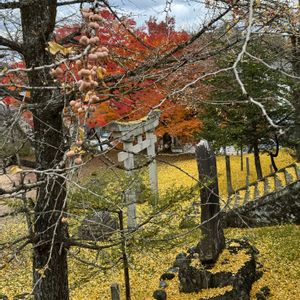 イチョウ(イチョウ科) 御神木なのでしょうか? 一面黄色い絨毯のよう 見上げるとギンナンがたわわに実ってました🟡🟡 飛騨護国神社 11/19