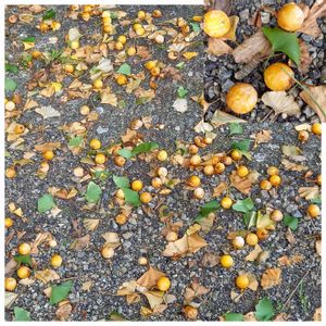 ギンナン 一面にギンナンが落ちて います。 ここは何処だと思いますか ??? 街路樹の植えてある 歩道です。・・・ すでに踏み潰されて ○○○・・・??? 想像にお任せします。 😲😯😮😧😢💦💦💦
